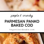 This Parmesan Panko Baked Cod is the perfect healthy meal to make for the whole family! The cod filets are dipped in buttermilk and dredged in a mixture of parmesan cheese and panko breadcrumbs, then baked at high heat until the crust turns perfectly golden and crunchy.